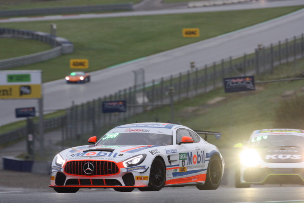 První závod mistrovství ADAC GT-Germany se startoval již brzy po polední přestávce. Američan Haub, který svým kvalifiklačním výkonem výše uvedené cíle Jílkové právě nepodpořil, se z prvního kola vrátil jako 11., zatímco Piana vepředu s přehledem vedl. Na této situaci se až do výměny jezdců v zásadě nic nezměnilo. Jílková převzala bílý Mercedes až 28 minut před koncem závodu jako 12., okamžitě se jí ale podařilo najít rytmus, kterým měla konkurenci navrch! O tři kola později byla v top10 a po dalším okruhu postoupila na 9. místo. Rychlá Češka byla ve výborné formě a očividně neztrácela svůj cíl, dojet mezi prvními pěti z očí: poté, co za sebou nechala dva vozy Porsche, již byla sedmá a když zaváhal McLaren týmu Doerr, patřila jí 6. pozice. 12 minut před koncem byla v závětří KUS-Porsche Alexandra Tauschera a KTM Leona Wassertheurera. Vysněné 5. místo Jílkové patřilo 8 kol před koncem, když pokořila hranatý rakouský vůz.